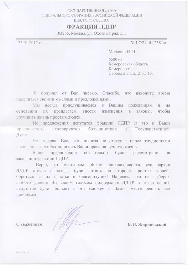 Текст нашего обращения нужно скачать на свой компьютер, заполнить (отредактировать) реквизиты отправителя и получателя, распечатать, подписать и отправить адресатам вместе с законопроектом и пояснительной запиской. Скачивайте, вставляйте свою фамилию и адрес, распечатывайте и отсылайте ;)