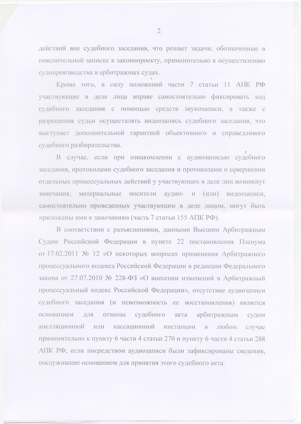 «2. Протокол может быть написан от руки, или напечатан на машинке, или изготовлен с использованием компьютера. Для обеспечения полноты составления протокола суд в обязательном порядке должен использовать средства аудио- и (или) видеозаписи. Возникшая техническая неисправность записывающей аудио- и видеоаппаратуры влечет за собой приостановление заседания суда. Материалы аудио- и (или) видеозаписи судебного заседания. Аудио- и видеозаписи судебного заседания имеют такую же юридическую силу, как и протоколы судебного заседания, и могут быть использованы сторонами по делу при обжаловании судебных решений.»;