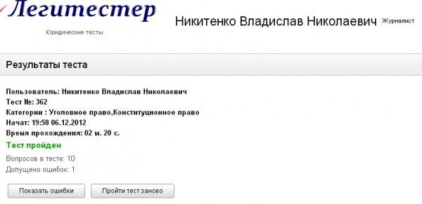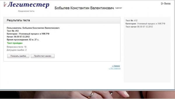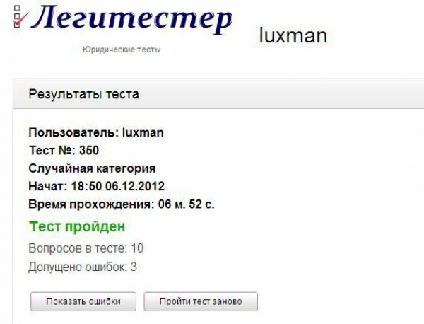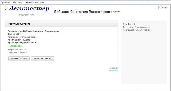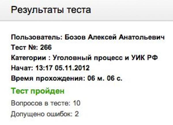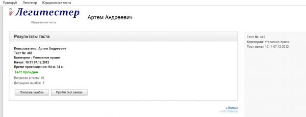 Тесты понравились, правда прошла только уголовное право, 2 ошибки, плохо, что без оплаты не посмотришь в чем ошибся