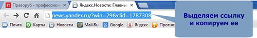 2. Далее нужно открыть в «НОВОЙ» вкладке Вашего браузера страницу сайта, ссылку на который Вы планируете разместить в описании публикации, выделить ее и скопировать.