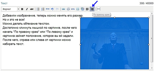 7. Изменение положения картинки и обтекание текстом. Достаточно кликнуть мышкой по картинке, после чего нажать «По левому краю»: