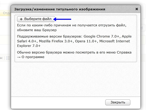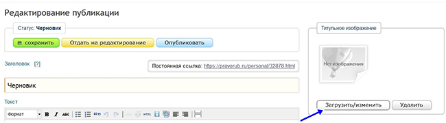 2. Для добавления картинки в описание к публикации необходимо нажать на кнопку «Загрузить/изменить».