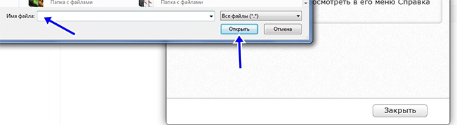 3. Выбрать нужный файл /или файлы. После того, как наименование файла появится в строке «Имя файла», надо нажать на кнопку «Открыть».