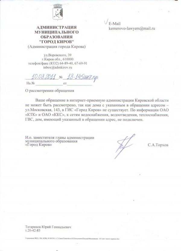 На данную жалобу поступил ответ Администрации Кировской области, следующего содержания: