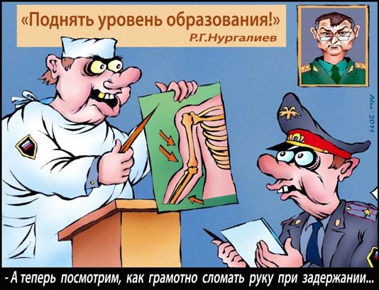 Для успешного решения задач, стоящих перед российской полицией, необходимо повышать юридическую грамотность и ?? уровень образования сотрудников МВД, заявил на ведомственном совещании в Вологде министр внутренних дел России Рашид Нургалиев, передает? Интерфакс.По словам Нургалиева, многие офицеры полиции имеют техническое и даже медицинское образование, но не имеют юридического. «Мы должны защищать закон и формировать правовое сознание граждан. А как решать эти задачи без юридического образования? — сказал глава МВД. — Вот и получается, что, не имея образования, полицейский не может разъяснить человеку его права и обязанности». Как считает министр, это значит, что полицейский не в полной мере выполняет свои обязанности.