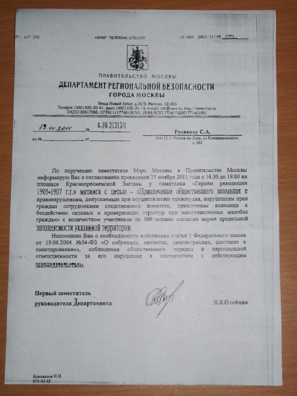 25 ноября в Москве состоится митинг протеста против произвола судей, следователей, бездействия силовых и надзорных ведомств