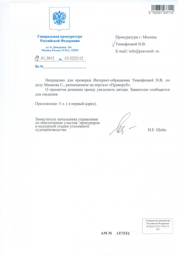 На данную жалобу поступил ответ Генеральной прокуратуры РФ, следующего содержания: