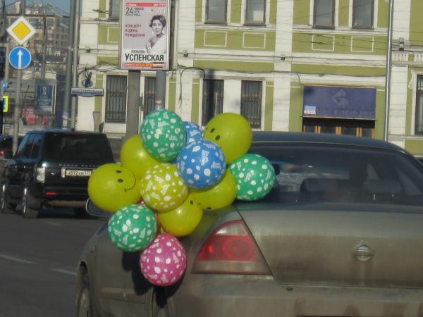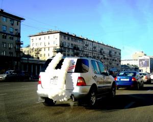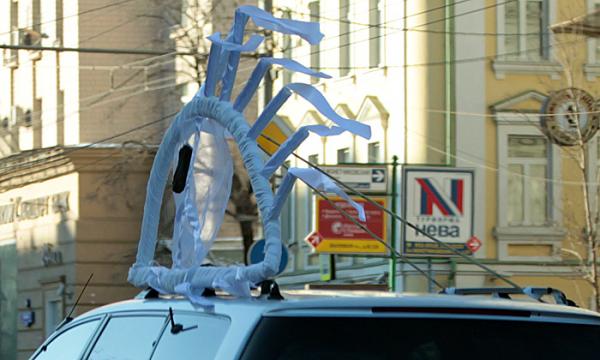 В акции приняли участие владельцы самых разных авто: от видавших виды жигулят до бентли и белоснежного роллс-ройса. И украшали их очень по-разному: от одинокой ленточки на антенне до дорогостоящих и не очень конструкций.