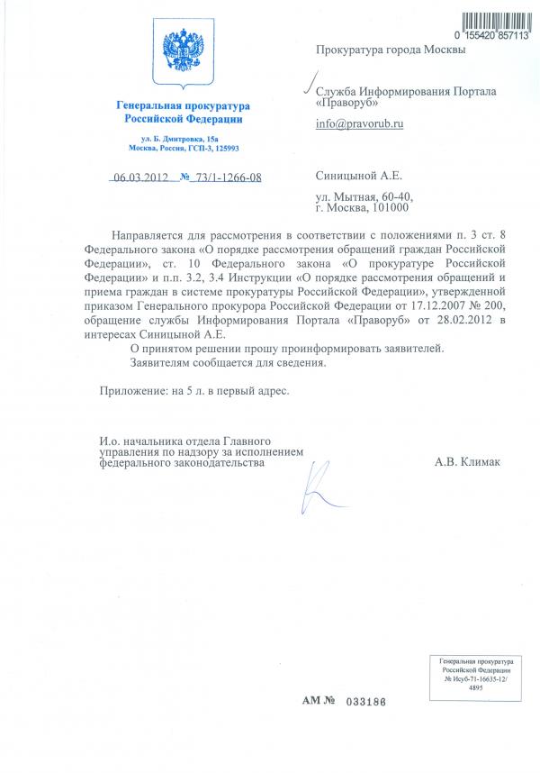 На данную жалобу поступил ответ Генеральной прокуратуры РФ, следующего содержания: