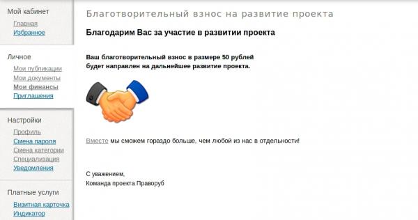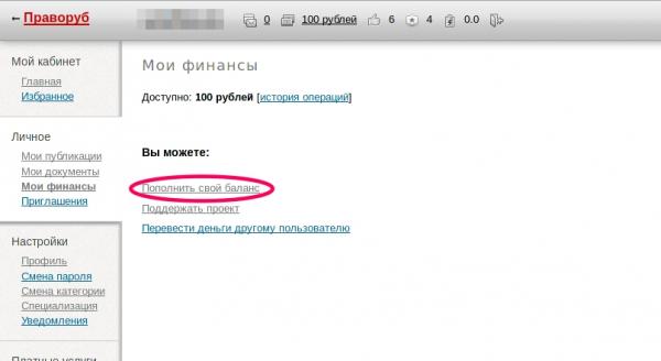 Как пополнить свой счет на сайте Праворуб.Ру, перевести средства другому пользователю или пожертвовать на развитие проекта