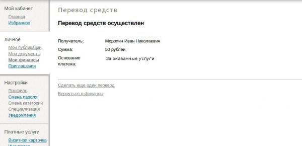 Введенные с систему денежные средства можно потратить двумя способами — перевести на счет другому пользователю или пожертвовать на развитие проекта.Для перевода другому пользователю необходимо из раздела «Мои финансы» перейти по соответствующей ссылке.