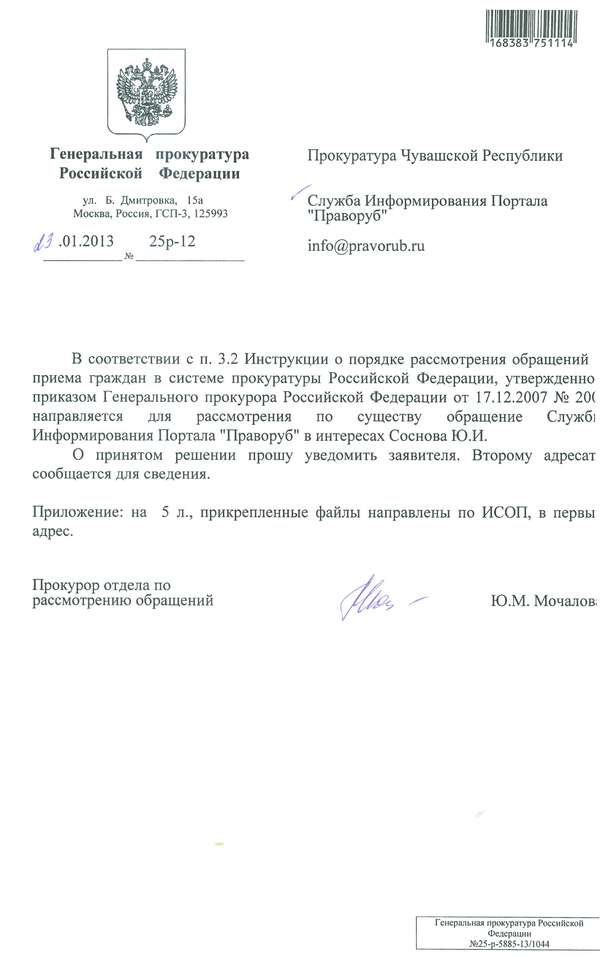 На данную жалобу поступил ответ из Генеральной прокуратуры Российской Федерации: