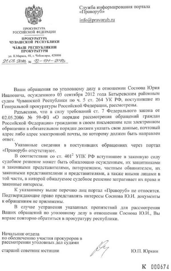 На данную жалобу поступил ответ из Прокуратуры Чувашской Республики:
