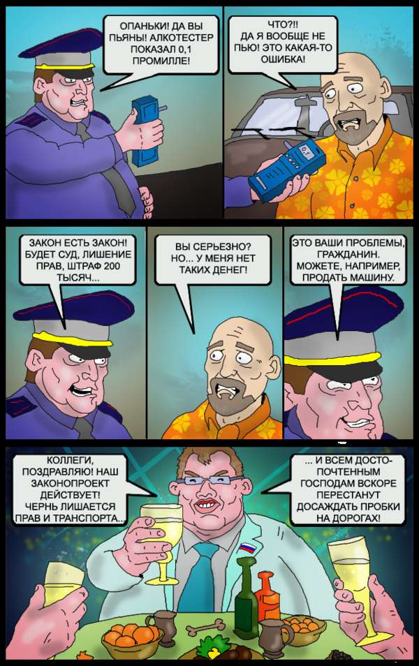 Любят у нас находить «козла отпущения», чтобы отвлечь народ от насущных проблем. То борются с внешним врагом, то с «оборотнями», то с коррупцией, теперь с «промиле»… Надо же такими компаниями создать видимость «энергичной» работы, «заботы» о гражданах России…