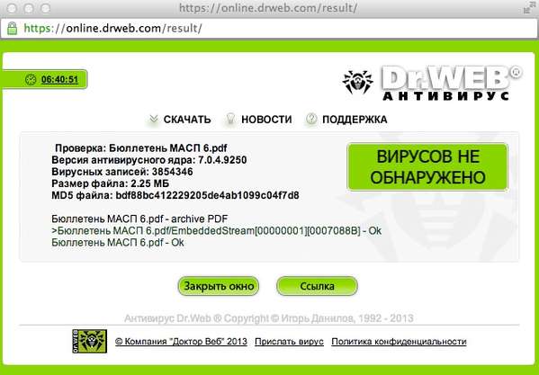 Дополнительно проверил тут: https://www.virustotal.com/ru/