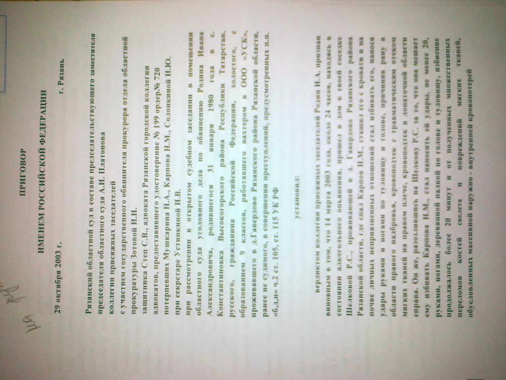Я, Родин Иван Александрович, в настоящее время отбываю наказание по приговору Рязанского областного суда Рязанской области от 29 октября 2003 года за преступления, которых не совершал.