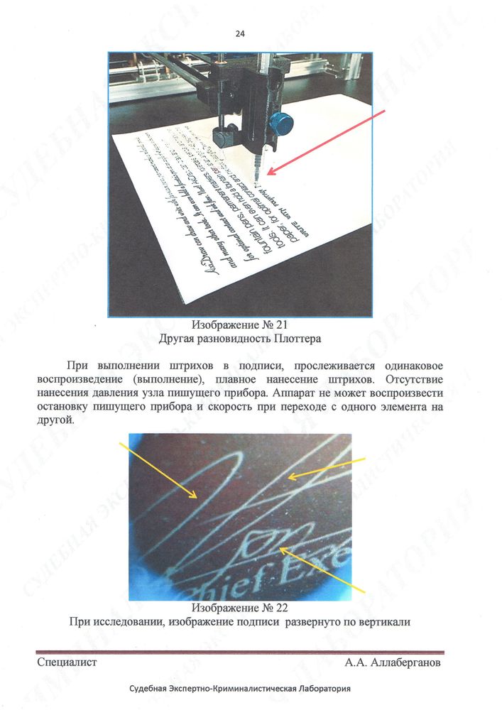 Кстати, подпись, рукописный текст, печатный текст и оттиск печати сейчас подделывают Плоттером ! Отличить – очень и очень Сложно !