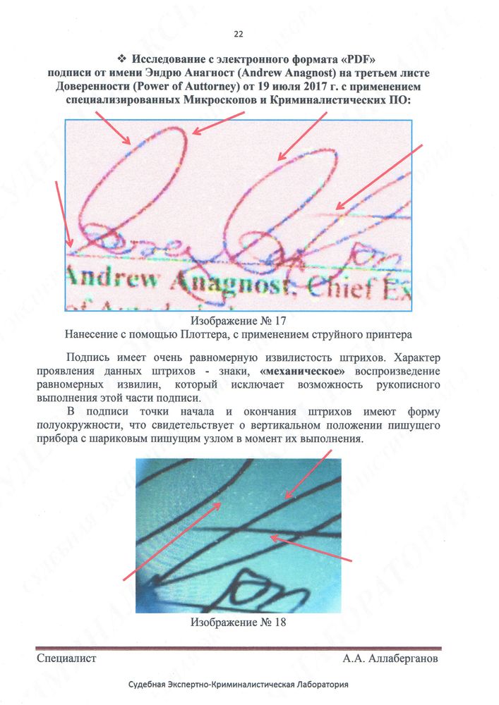 Уважаемый Ахмеджан Атаханович, уважаемые эксперты, если делать качественную подделку, то полагаю нужно снимок с оригинальной подписи перевести из растрового формата в кривые, преобразовать в Gerber и отправить на плоттер. Наклонить ось Z и закрепить авторучку через двухсторонний регулируемый демпфер. Тогда подделка будет максимально приближена к оригиналу. Демпфер даст утонение линии при касании и отрыве пера. Бумагу закрепить на электростатическом или вакуумном структурированном столе.