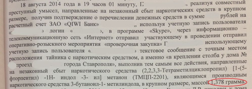Уважаемый Станислав Владимирович, Приобретено — 1,378 гр… Часть изъята в ходе ОРМ — 1,378 гр… Сколько грамм приобретено другими лицами?Налицо обман покупателей. Тайники были пустыми.