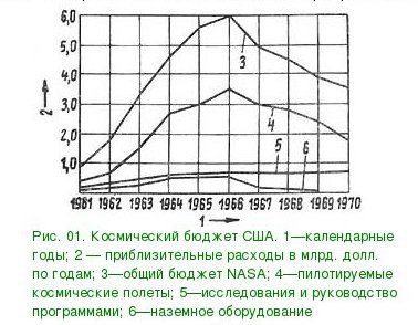 Наиболее полное представление о всех этапах подготовки и полетах на Луну нам дает график финансирования космической программы, где видно, что первоначально США действительно начали разработки и подготовку к полету на Луну. Бюджетные ассигнования NASA, начиная с 1961 г., быстро росли и достигли максимума в 6 млрд. долл. в 1966 г. Однако экономические и финансовые проблемы, возникшие в США вследствие войны во Вьетнаме, привели к резкому сокращению бюджета NASA, начавшемуся в 1966г.