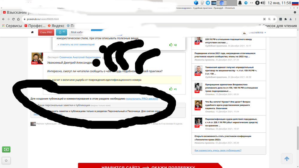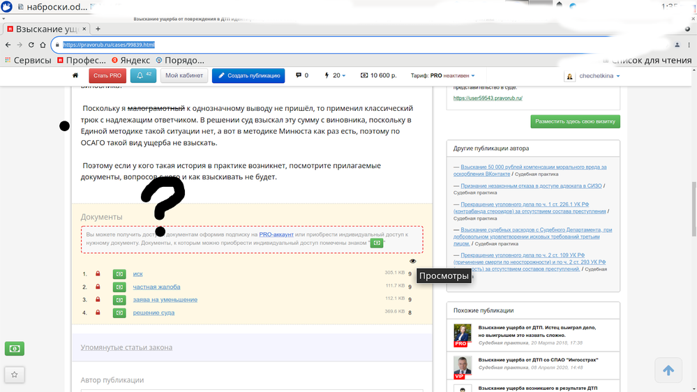 3. Участие в жизни профессионального сообщества, получение опыта — это то, ради чего я пришла на Праворуб. Чуть позднее открыла для себя множество иных полезных и необходимых функций, хорошо, что можно просто нажимать кнопочки и все получается само, не нужно выполнять каких то сложных манипуляций чтобы разобраться с сайтом. Но я сейчас не об этом, а о том, что мне нужно смотреть практику, изучать решения, ходатайства, иски и прочие авторские процессуальные документы. Праворуб — это единственный сайт, где можно все это получить. Естественно, теперь ученая и понимаю что нужно Про-Аккаунт. Конечно, есть всем известные правовые системы и они очень выручают, конструктор документа, практика, аналитика, но ты как бы открываешь Америку. Хотя, на Праворубе сто процентов кто-то уже это прошел и поделился опытом, подсказал какие подводные камни и как не оступиться, почему бы не порадоваться и не перенять в свою копилку?